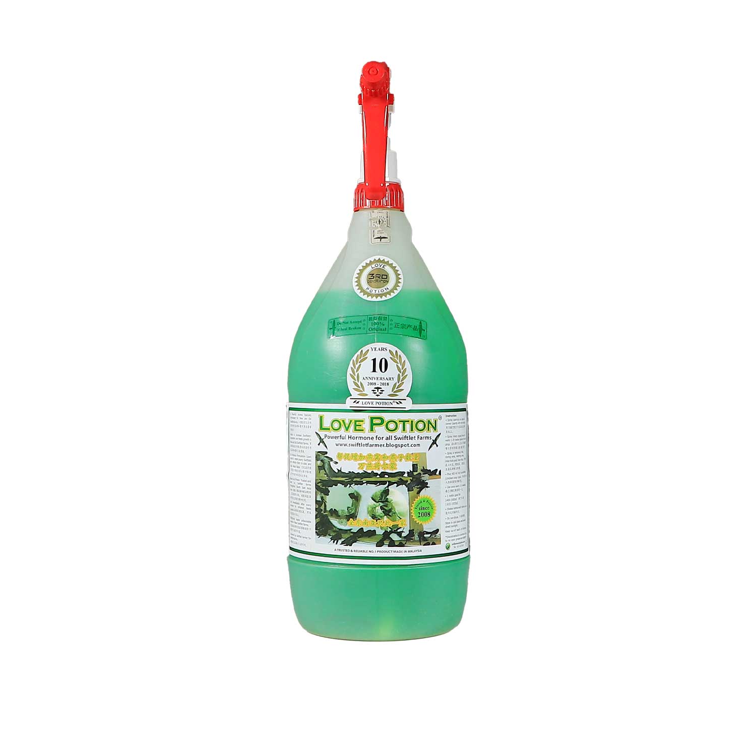 - Dung dịch Love Potion có công hiệu rất lớn, được bào chế đặc biệt cho cả nhà chim mới và cũ. Công thức tạo mùi tiên tiến của sản phẩm giúp giữ chân chim yến non và kích thích tạo tổ nhanh hơn. 100% thành phần hữu cơ, lên men tự nhiên, không chất bảo quản. Đảm bảo giữ nguyên chất lượng dù có hiện tượng chuyển đổi màu.