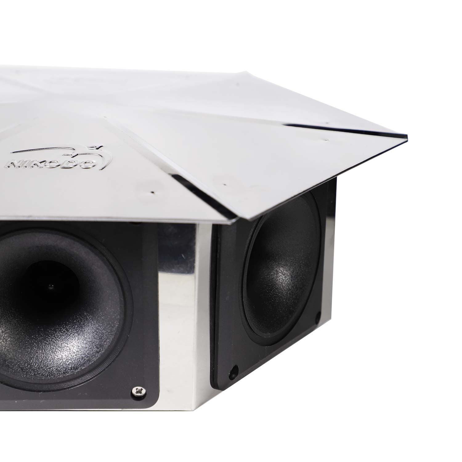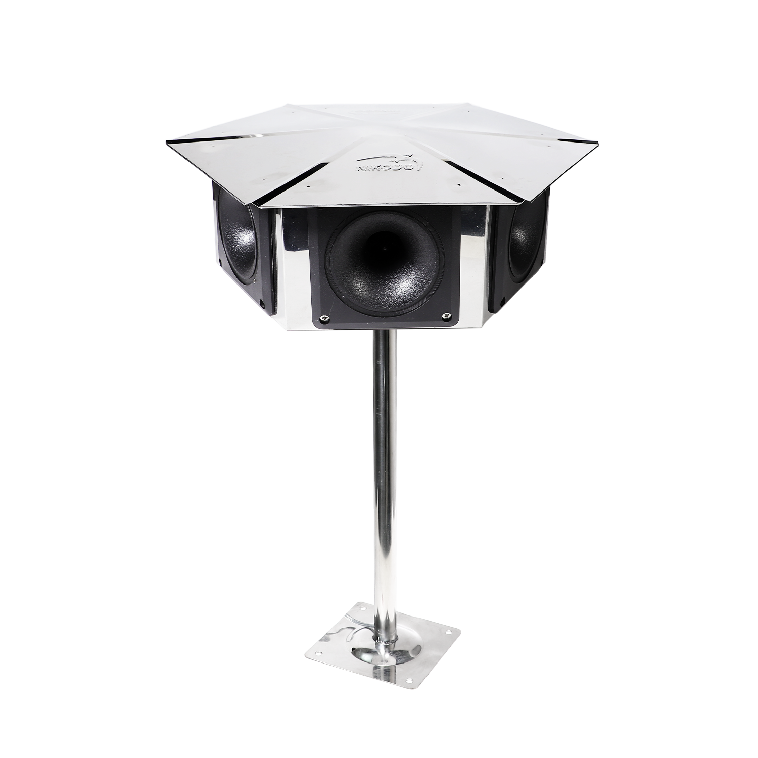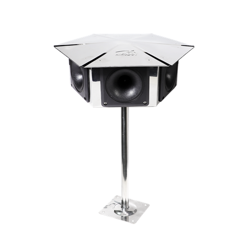 - Bộ khung được gia công từ inox cao cấp cho đặc tính bền bỉ, chịu được thời tiết khắc nghiệt của môi trường ngoài trời. Ngoài ra, phần nón được thiết kế dạng hình dù với độ phủ phù hợp, giúp bảo vệ loa bên trong khỏi nắng, mưa, góp phần tăng độ bền thiết bị và đảm bảo âm thanh phát ra mượt, chuẩn, không méo tiếng.
