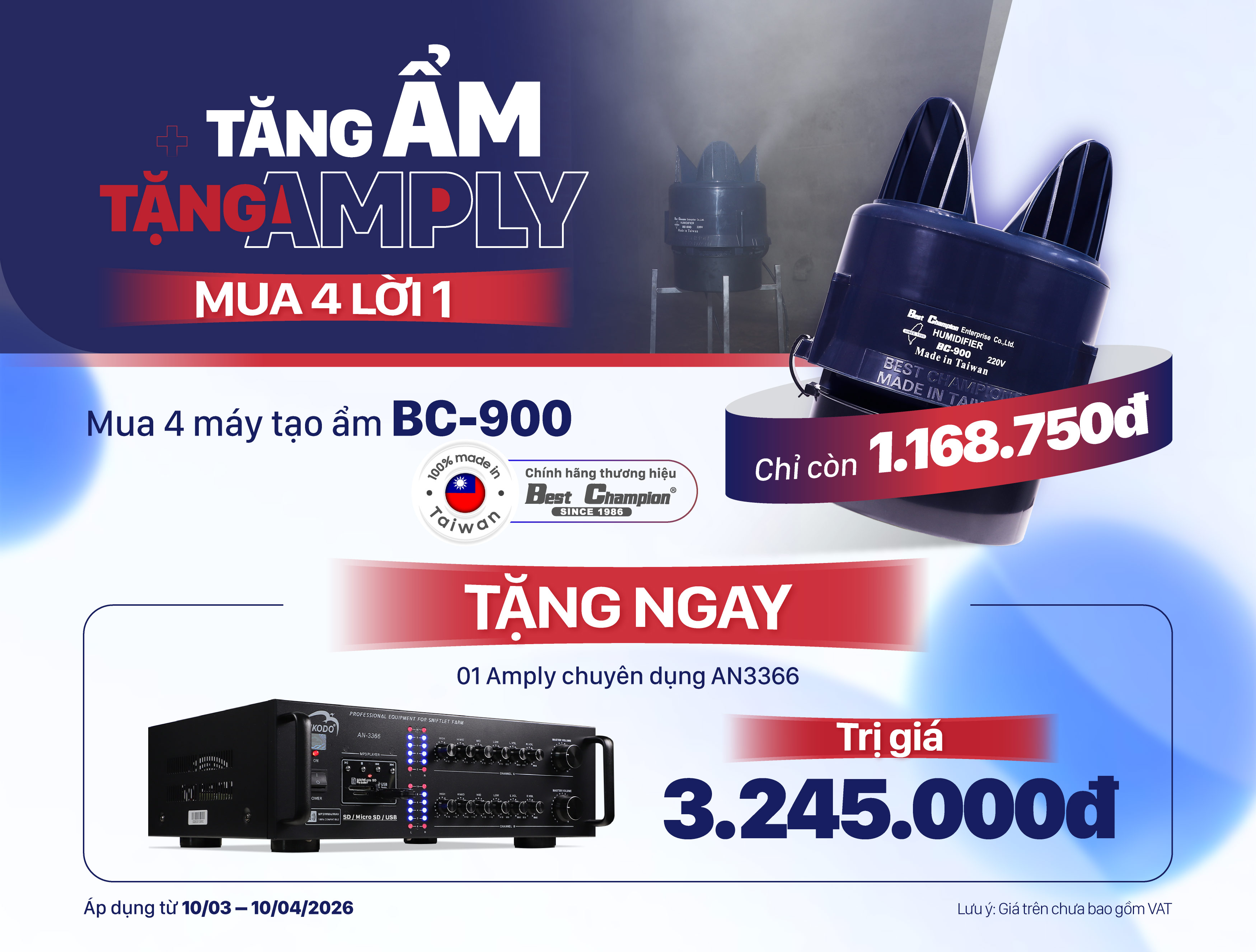 📞 Bà con mình đang tìm máy tạo ẩm cho nhà yến hoặc muốn tìm hiểu thêm về chương trình BC-900 – Tặng Amply AN3366, vui lòng liên hệ Nikodo – Hotline: 0909 645 636 để được tư vấn chi tiết và nhận ưu đãi trong thời gian chương trình còn áp dụng.